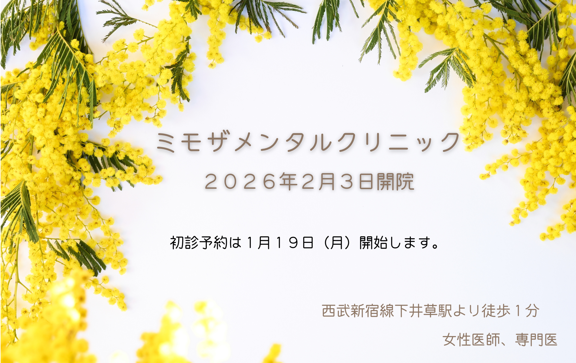 このたび下井草駅前に「ミモザメンタルクリニック」を